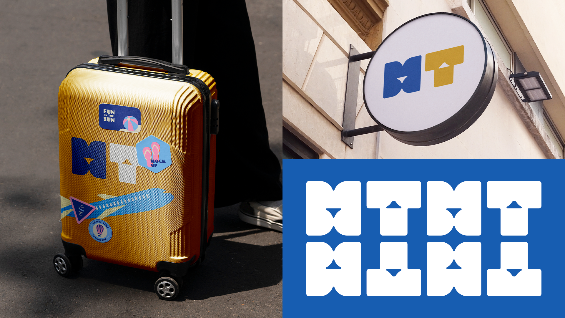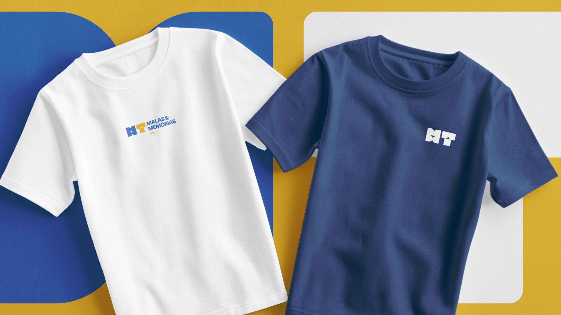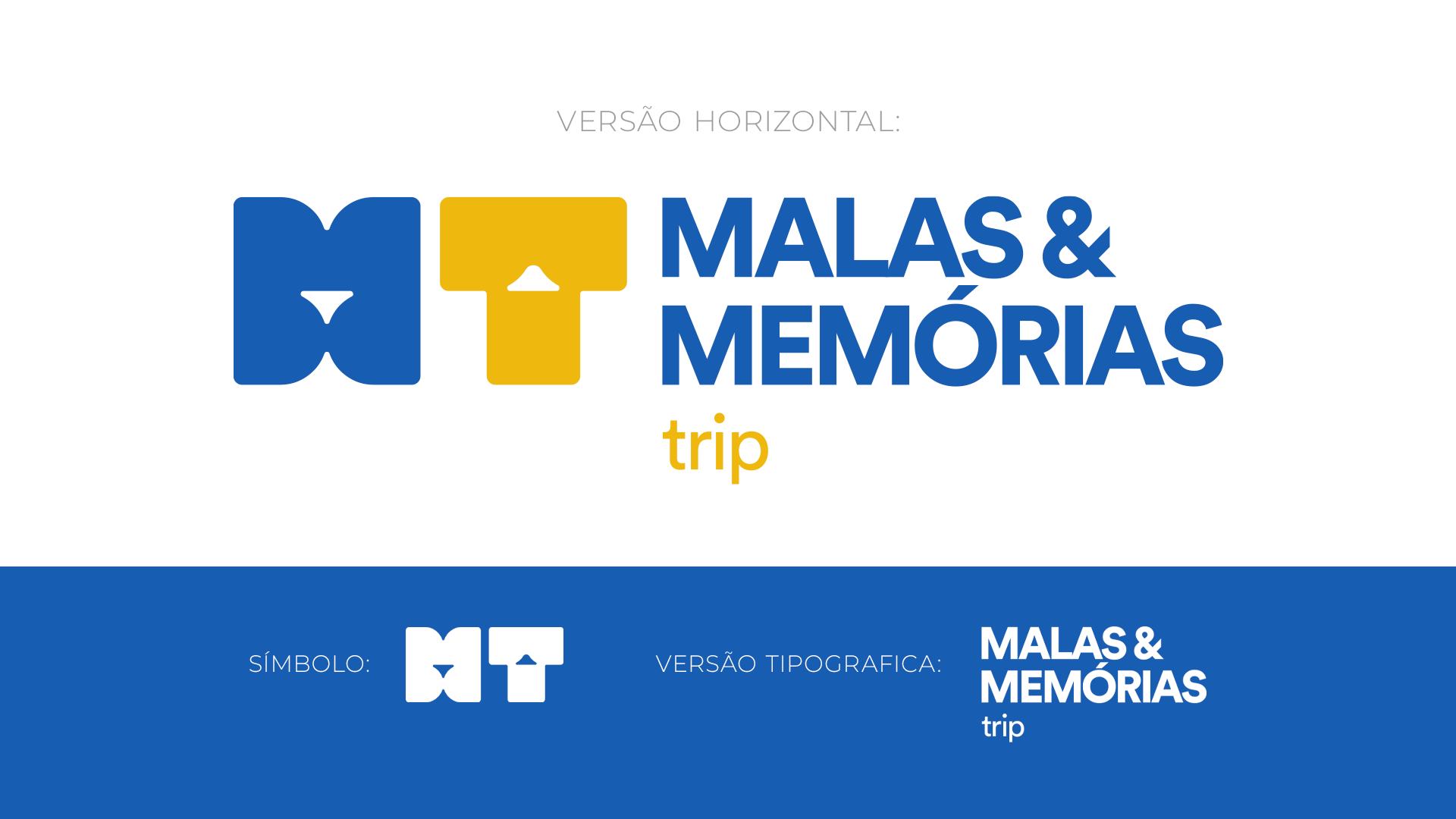 A ideia principal foi criar uma solução moderna que representasse uma mala e um avião utilizando simbolos minimalista para formar as letras M (MALAS E MEMORIAS) e T (TRIP).